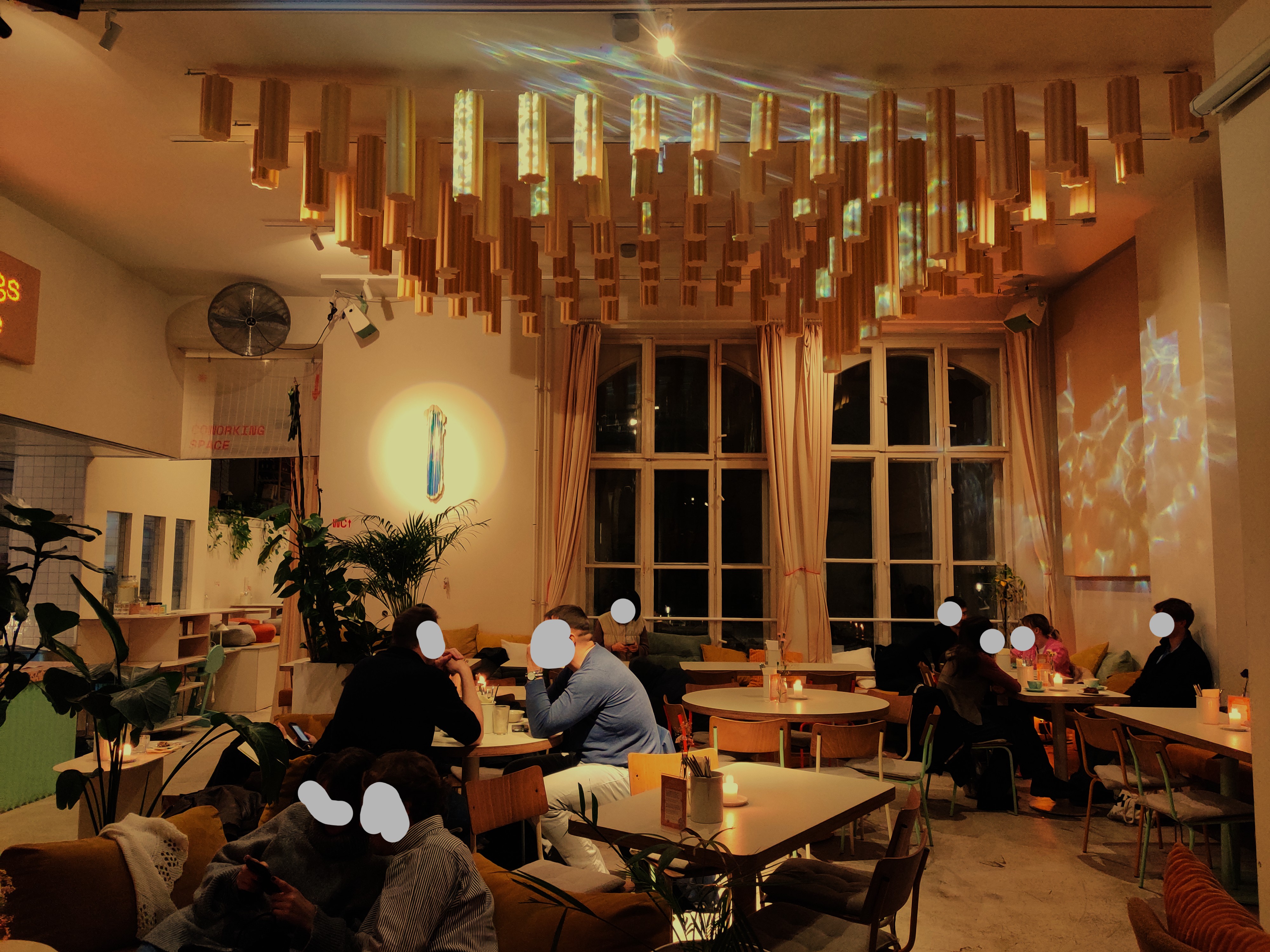 Ein schickes Café mit einem Co-Working-Space hinten, das eine kleine Auswahl an rein veganen und vegetarischen Fusionsküchen, verschiedenen heißen Getränken und Kuchen serviert.