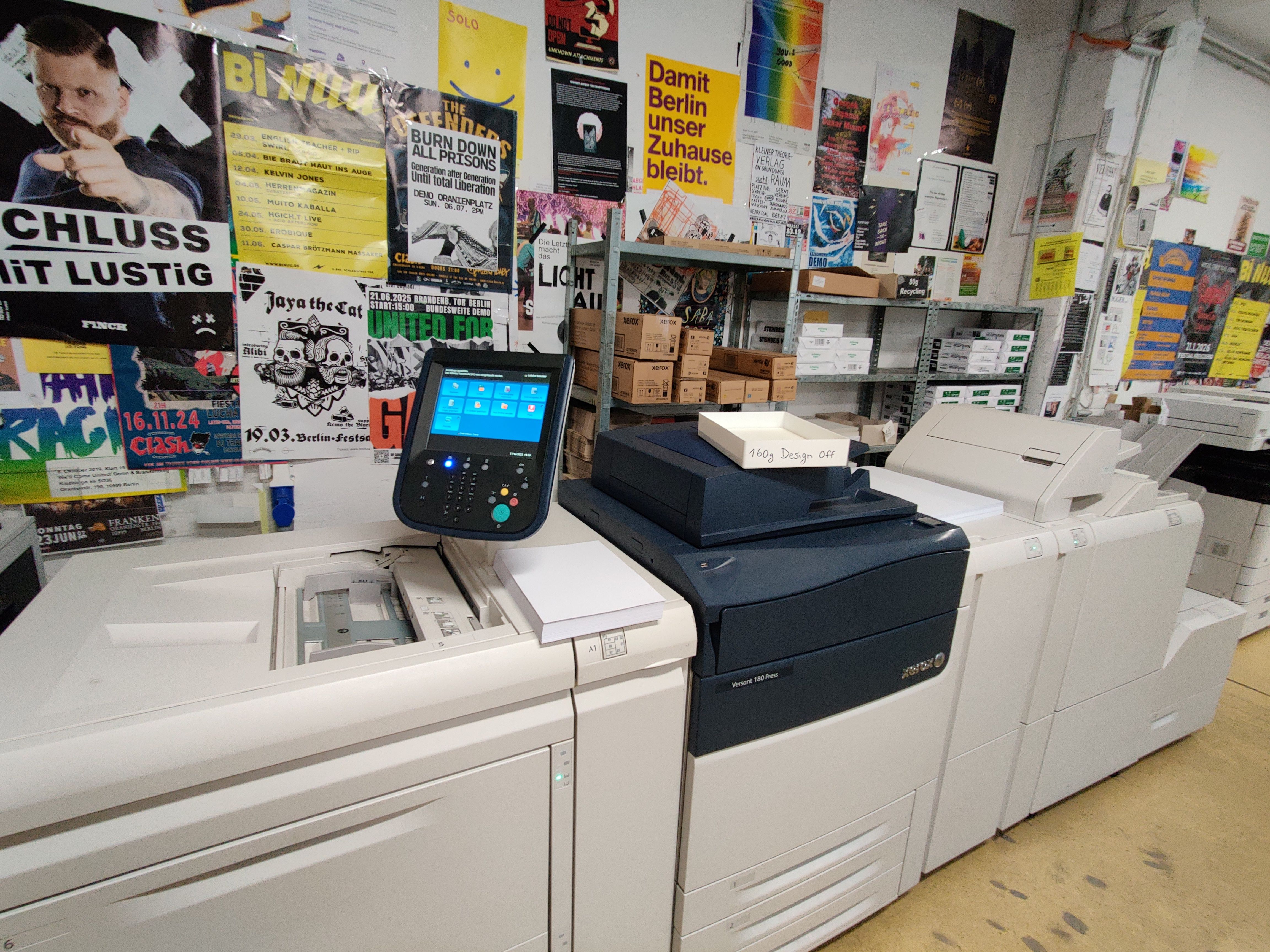Eine Druckerei, die viele Dienstleistungen anbietet, wie Kopieren, Drucken in vielen Größen bis A0 und auf vielen Papiersorten, Laminieren bis A2 und Buchbinden.