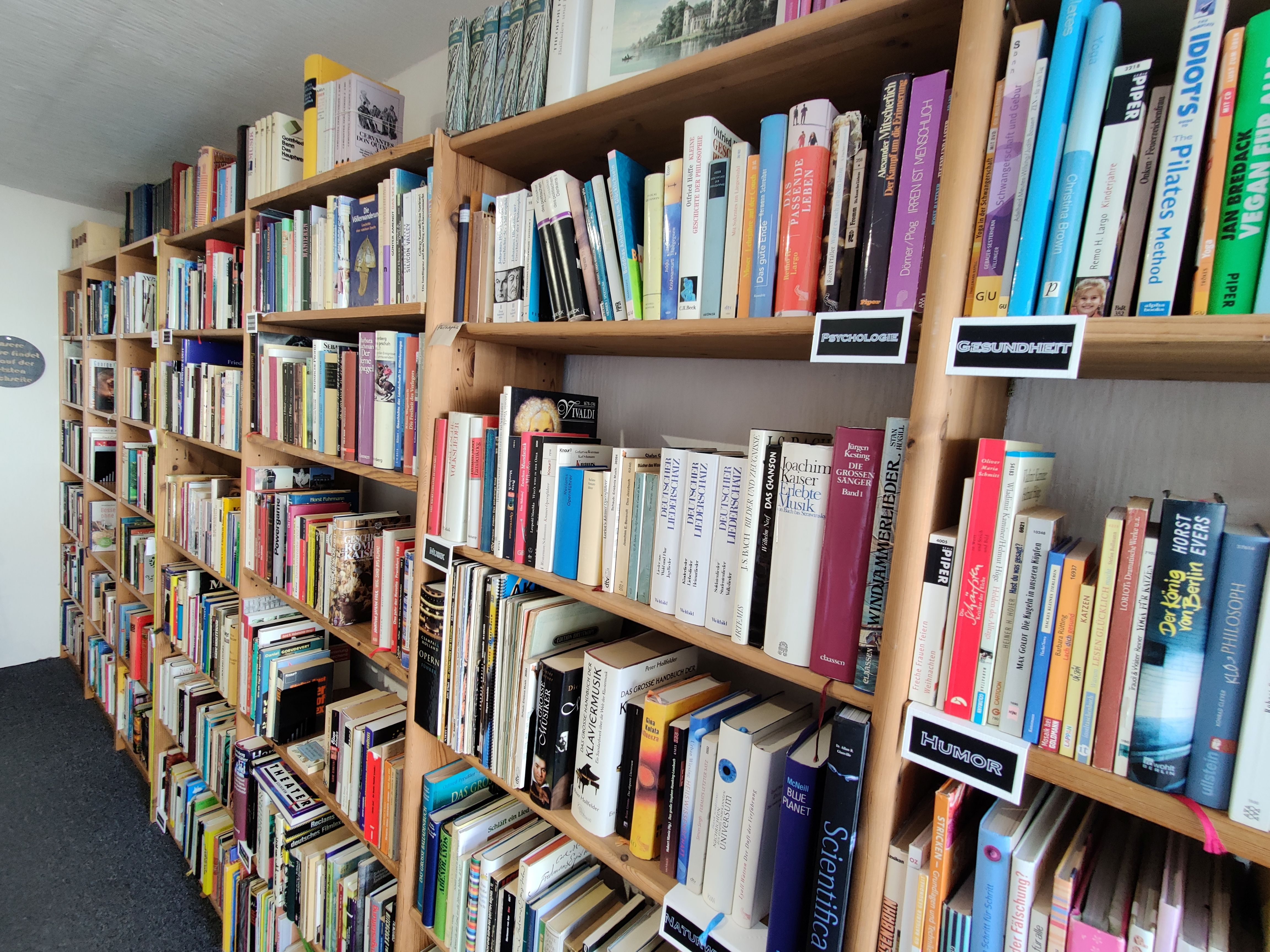 A small second hand nonprofit bookshop, with book priced up to 5 Euros and free children's books.